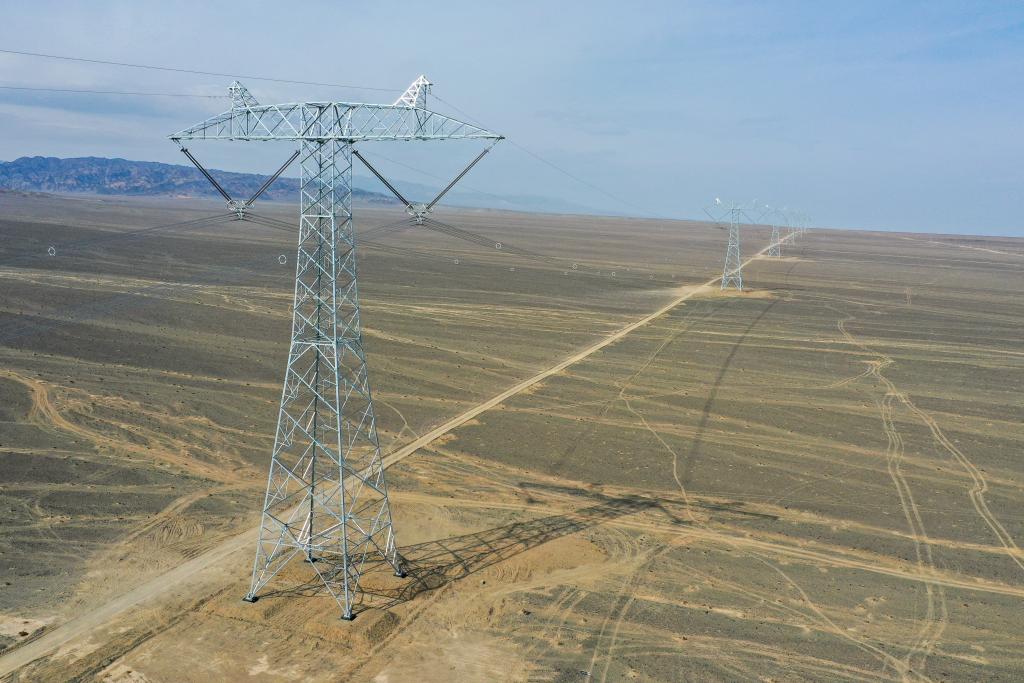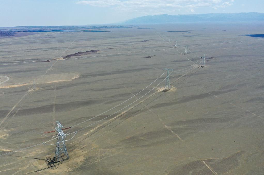 这是6月10日拍摄的哈密—重庆±800千伏特高压直流输电线路(无人机照片)。新华社记者 丁磊 摄