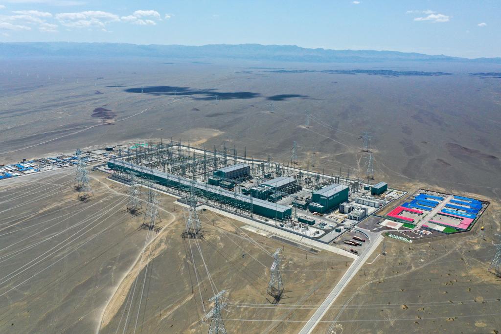 这是6月10日拍摄的哈密—重庆±800千伏特高压直流输电工程新疆送端站——巴里坤换流站(无人机照片)。新华社记者 丁磊 摄