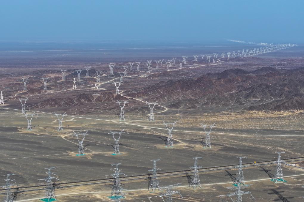 这是3月21日拍摄的哈密—重庆±800千伏特高压直流输电配套线路(无人机照片)。新华社记者 丁磊 摄